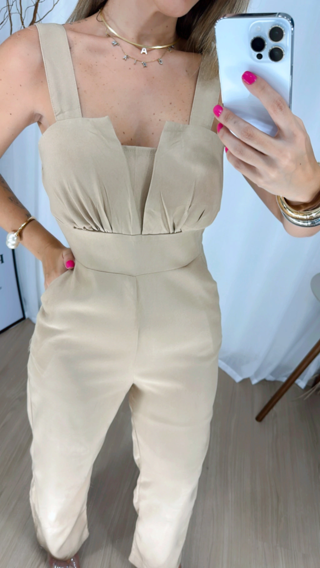 Experimente o incrível Macacão Alfaiataria, que combina sofisticação e praticidade! Com alças largas e um busto em bojo, ele proporciona um suporte perfeito e um recorte estruturado que valoriza suas curvas.